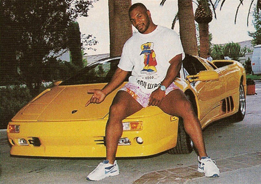 Võ sĩ quyền anh huyền thoại Mike Tyson bên cạnh mẫu xe huyền thoại Diablo