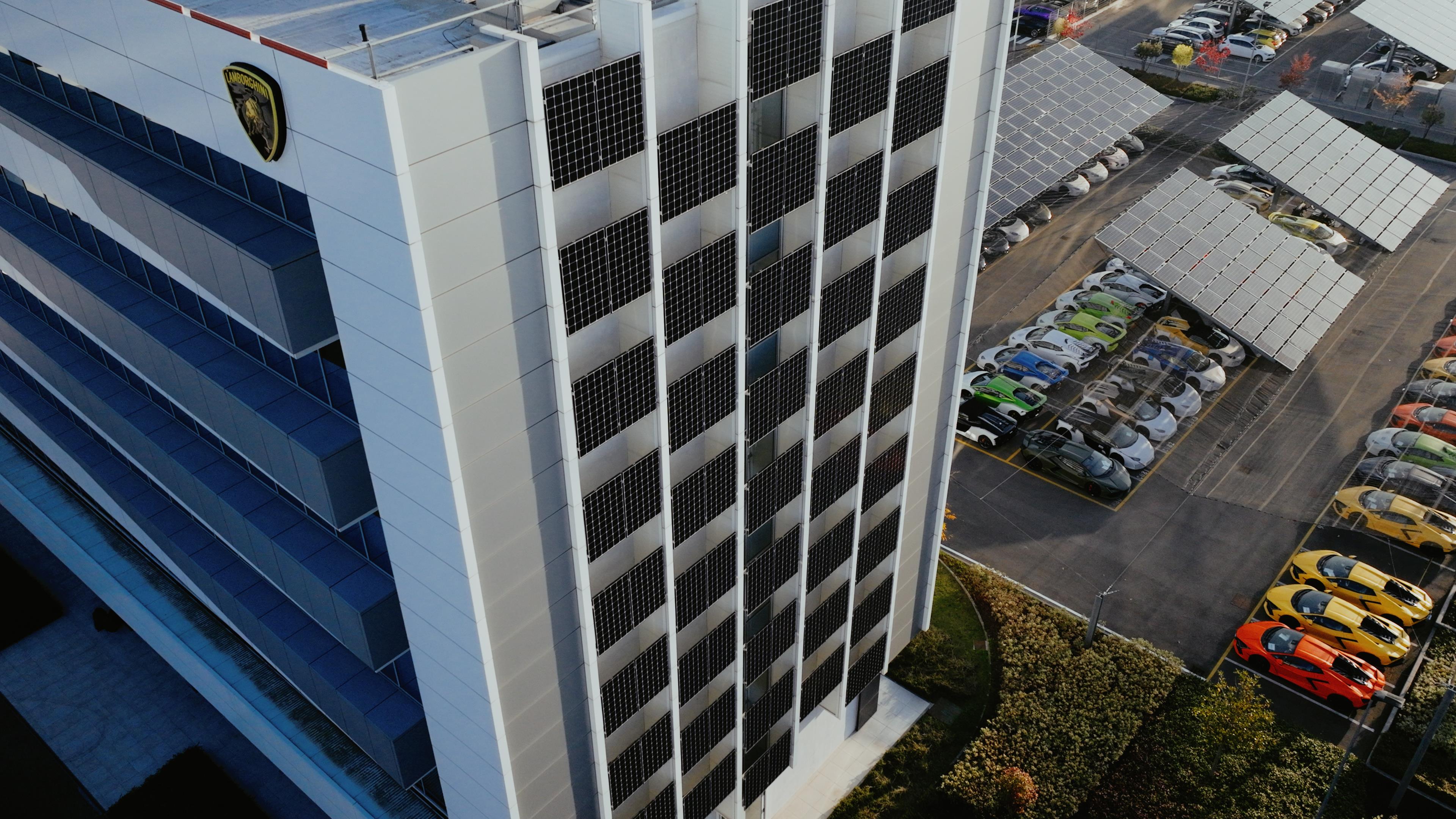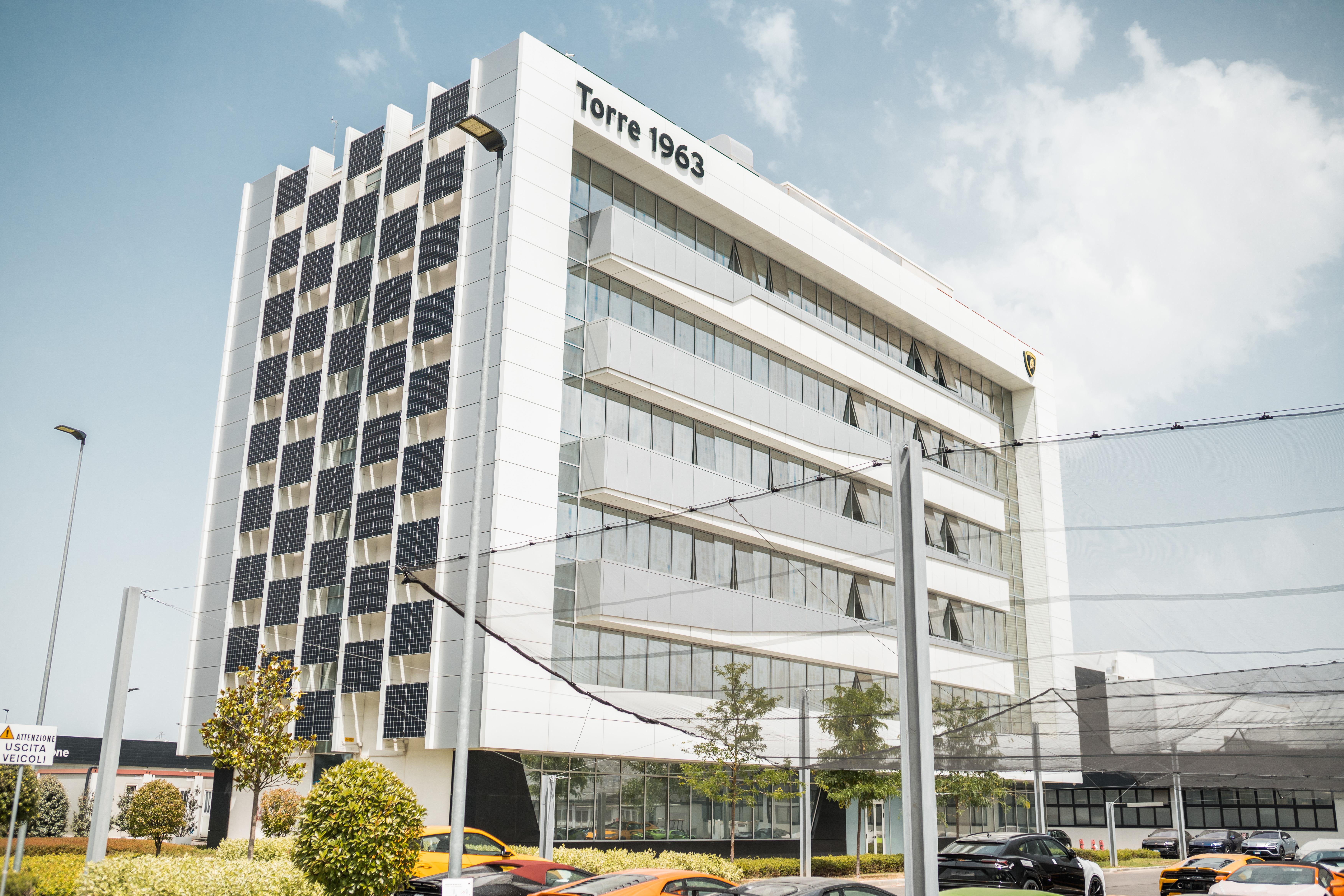 Sự chú trọng đến hiệu quả năng lượng cũng được thể hiện tại kiến trúc của công ty. Torre 1963, trụ sở chính của Lamborghini, được khánh thành vào năm 2017 và đạt chứng nhận LEED Platinum với số điểm 92 trên 100 — mức điểm cao nhất từng đạt được tại nước Ý vào thời điểm đó.