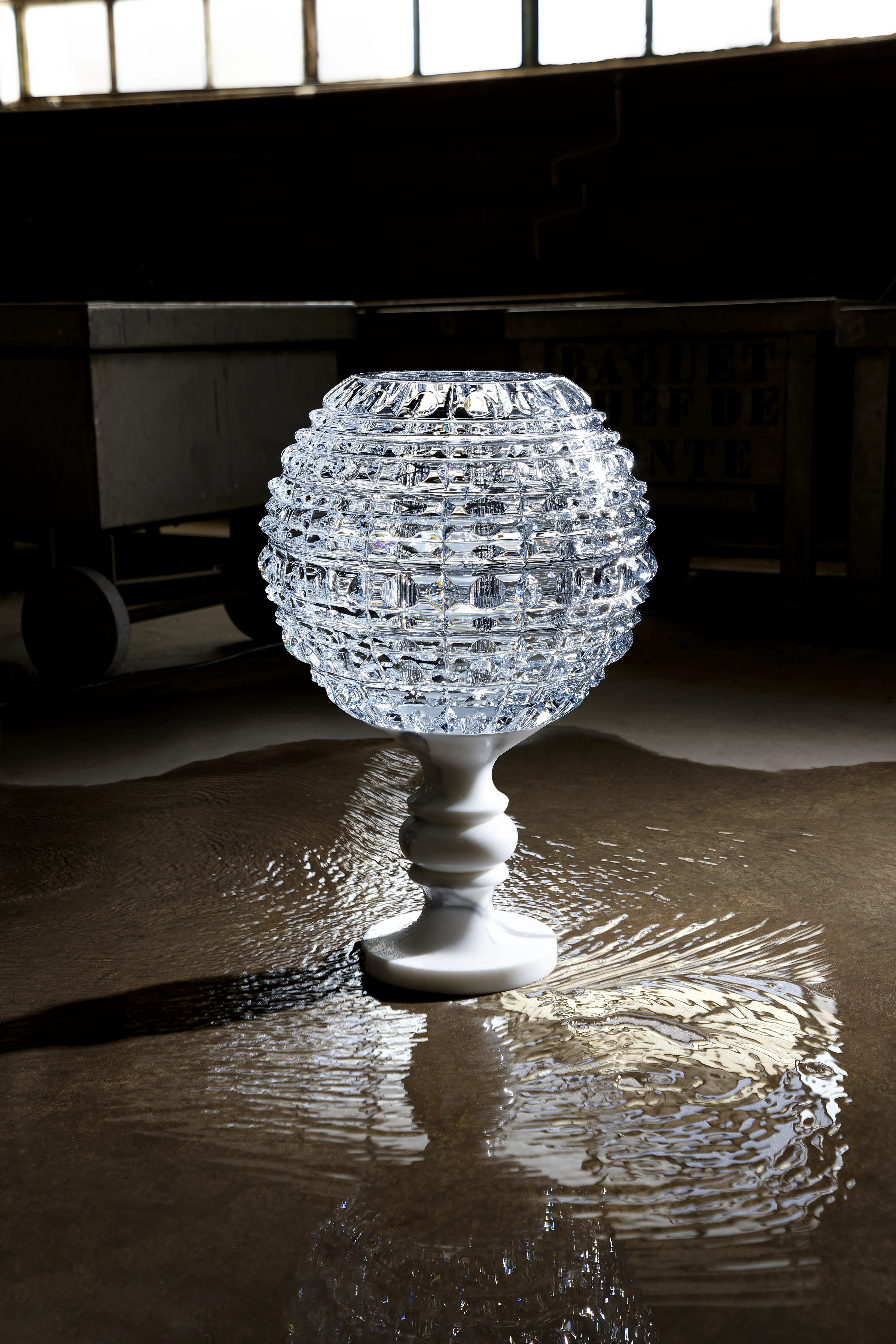 Baccarat cũng tìm thấy cảm hứng từ chính ngôn ngữ vĩnh cửu ấy. Nhưng nếu kiến trúc sư tạo nên sự vĩ đại từ đá và thép, thì nghệ nhân Baccarat lại tìm thấy sự vĩ đại trong ánh sáng. Và họ đã chọn con đường khó nhất: khắc họa hình khối trong những chiếc bình pha lê ngoại cỡ.