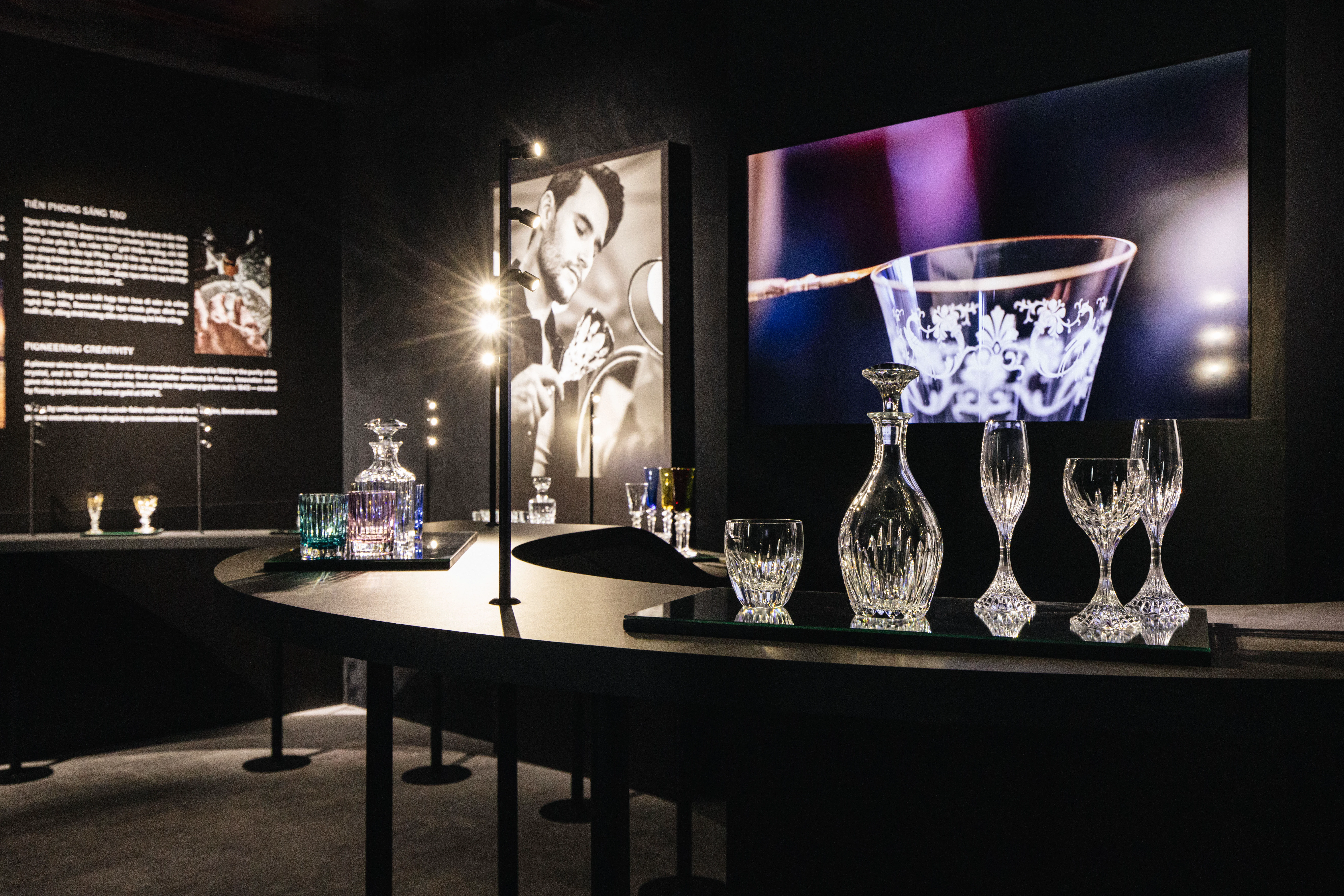 Bước sang không gian thứ hai, người xem như bị mê hoặc bởi sự khéo léo – nơi kỹ nghệ savoir-faire huyền thoại được phơi bày trong vẻ lộng lẫy và chính xác đến tuyệt đối. Những bộ sưu tập kinh điển hiện lên như những chương sử của pha lê Pháp: mỗi đường cắt, mỗi phản chiếu ánh sáng đều kể lại câu chuyện về đôi tay tài hoa và tinh thần sáng tạo không giới hạn mà Baccarat đã gìn giữ suốt hơn hai thế kỷ.
