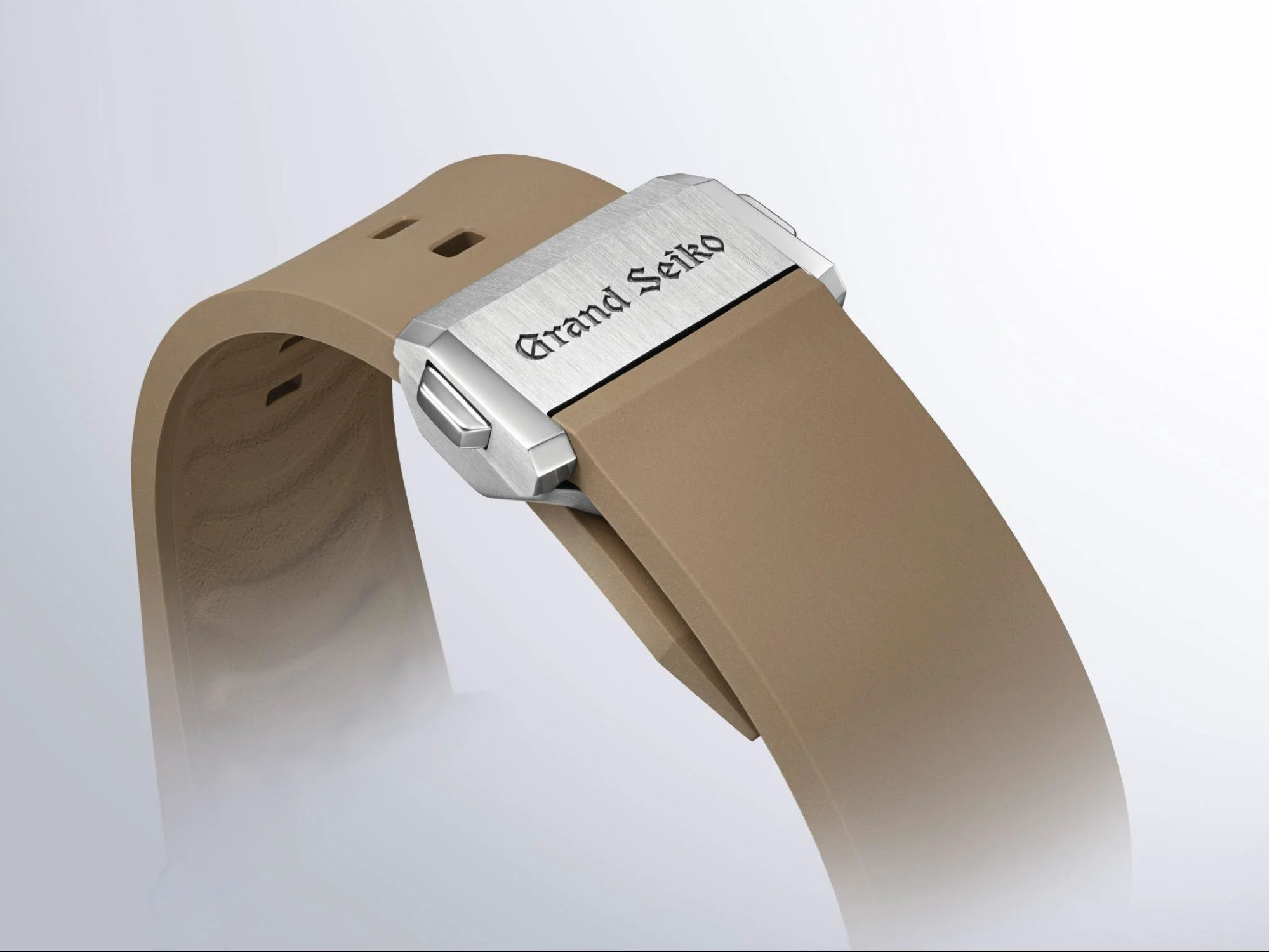 Dây đeo cao su mới được phát triển riêng cho mẫu đồng hồ này có độ bền cao gấp 2,7 lần so với dây silicone thông thường của Grand Seiko. Với màu nâu hài hòa cùng họa tiết tinh xảo, dây đeo không chỉ mang lại cảm giác mềm mại mà còn sở hữu thiết kế độc đáo ở mặt trong, lấy cảm hứng từ dấu chân sư tử – một chi tiết tinh tế mà chỉ người đeo mới có thể chiêm ngưỡng. Kết hợp cùng thiết kế mặt sau hơi cong, dây đeo mới đảm bảo sự thoải mái và ổn định trên cổ tay, đáp ứng được tiêu chuẩn khắt khe của một mẫu đồng hồ thể thao Grand Seiko.