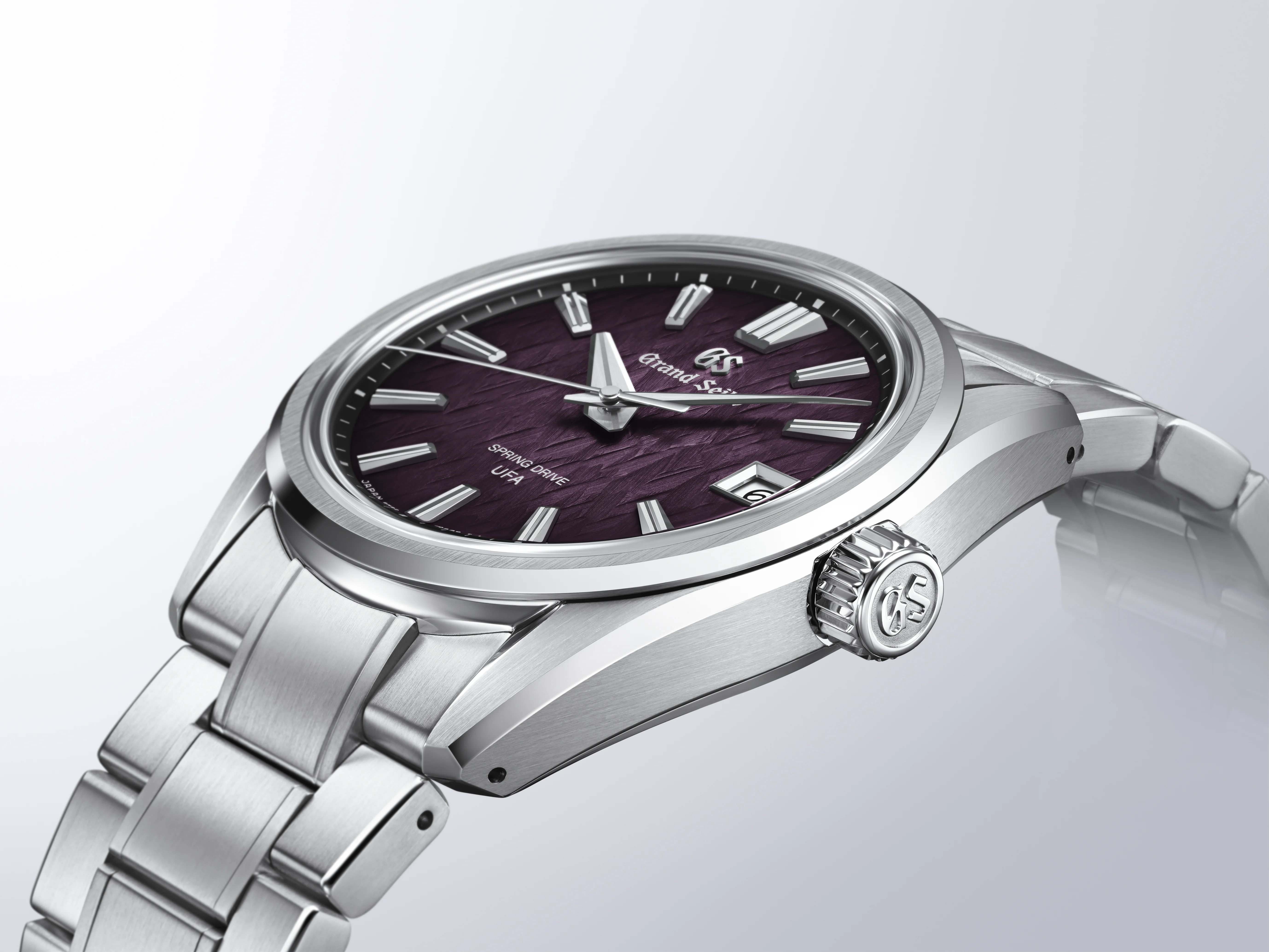 Tiếp nối thành tựu này, Grand Seiko giới thiệu phiên bản SLGB005 - một sáng tạo Spring Drive U.F.A. hoàn toàn mới được chế tác từ Ever-Brilliant Steel, hợp kim thép không gỉ nổi tiếng với khả năng chống ăn mòn vượt trội và sắc sáng đặc trưng. Mặt số đồng hồ gây ấn tượng mạnh mẽ khi tái hiện khoảnh khắc bình minh ló rạng trên khu rừng phủ sương giá tại vùng Shinshu, miền Trung Nhật Bản – nơi tất cả các kiệt tác Spring Drive của Grand Seiko được chế tác thủ công tỉ mỉ.