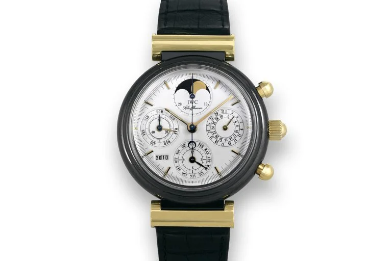 Không dừng lại trên những thành tựu đã đạt được, chỉ một năm sau đó, vào năm 1986, IWC tiếp tục trình làng mẫu Da Vinci Perpetual Calendar Chronograph với bộ vỏ làm từ ceramic, đánh dấu lần đầu tiên ngành đồng hồ Thụy Sĩ ứng dụng vật liệu này. Ý tưởng sử dụng ceramic cho vỏ đồng hồ khi ấy được xem là vô cùng tham vọng. Điều này hoàn toàn hợp lý, bởi sau kim cương, ceramic kỹ thuật là một trong những vật liệu cứng nhất thế giới, gần như không thể trầy xước. Để hiện thực hóa điều đó, IWC đã phải tiên phong phát triển công nghệ tạo hình và gia công ceramic với độ chính xác cao. Những chiếc đồng hồ ra đời từ giai đoạn này, kết hợp giữa bộ máy mang tính đột phá và công nghệ chế tác vỏ tiên tiến, ngày nay được xem là những cột mốc lịch sử quan trọng, đồng thời là các tác phẩm sưu tầm có giá trị bậc nhất trong lịch sử đồng hồ hiện đại.