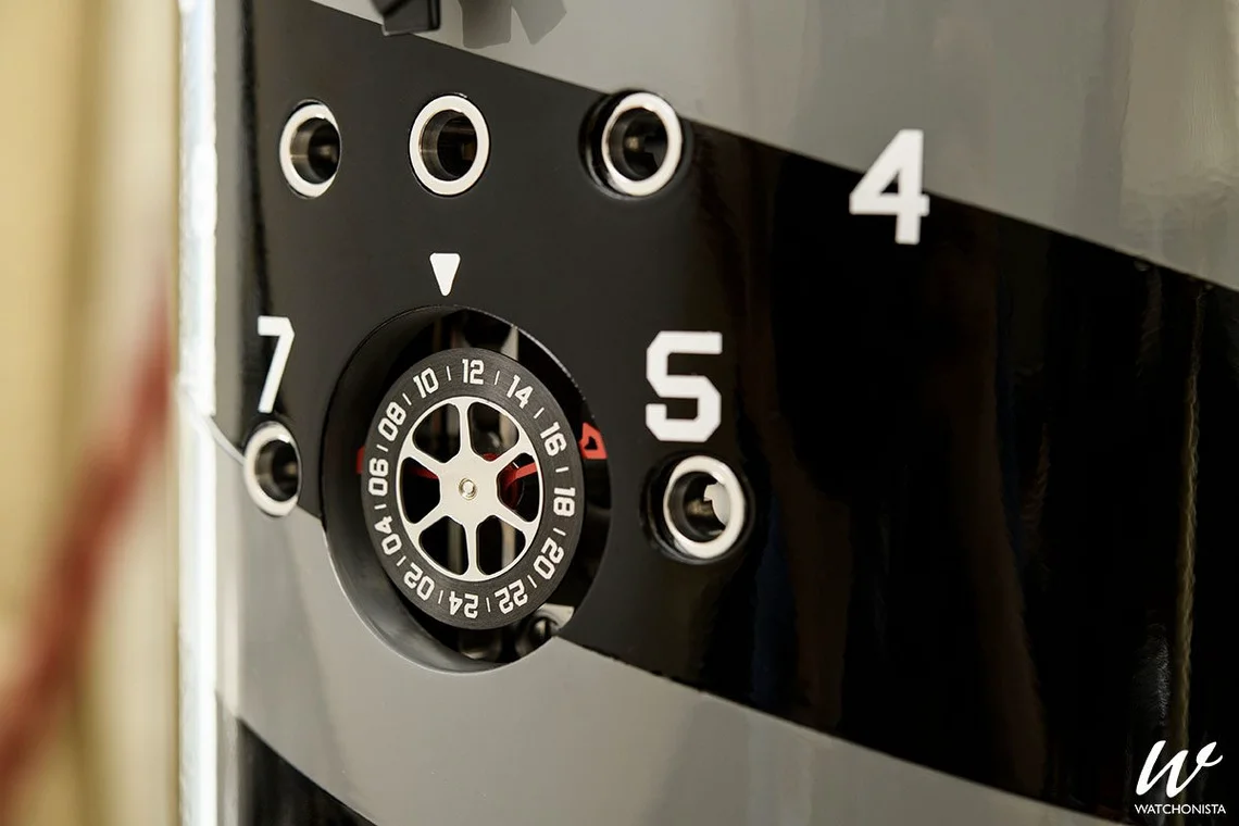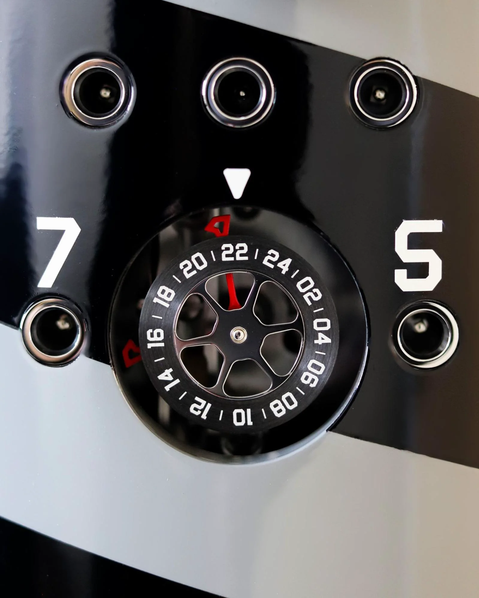 Đối với những khoảnh khắc cần sự yên tĩnh tuyệt đối, mặt số thứ hai cho phép lập trình sẵn các khoảng thời gian yên lặng với độ chính xác cao. Mỗi bộ chuyển động được lên dây cót riêng biệt thông qua cần gạt chuyên dụng, trong khi việc điều chỉnh giờ được thực hiện dễ dàng nhờ chiếc chìa khóa vuông được hoàn thiện thủ công tinh xảo.
