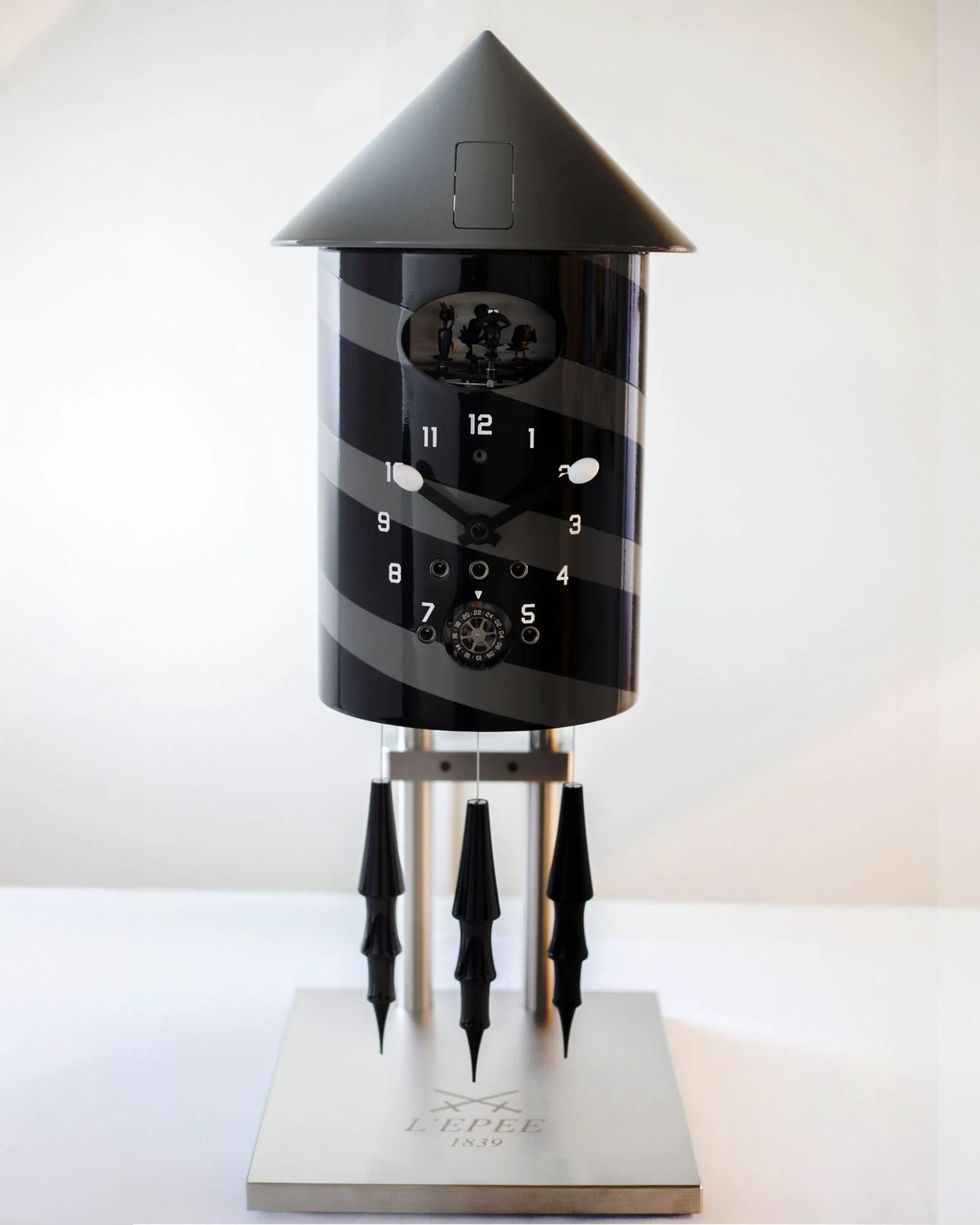 Thời gian được hiển thị qua hai kim đồng hồ lấy cảm hứng từ hình dáng que diêm – một sự tri ân dí dỏm với tinh thần trào phúng đầy năng lượng của hoạt hình cổ điển. Nhưng sự kỳ diệu thực sự chỉ thực sự bắt đầu khi bộ máy cơ học được lên dây cót: tiếng chim Cuckoo cất vang, đồng thời các hình nhân cơ học – lấy cảm hứng từ nét hài đặc trưng của “Tex Avery”, trò nghịch ngợm bất tận của “Tom và Jerry” hay vẻ năng động của “Looney Tunes” – bắt đầu chuyển động, đưa người xem trở lại tuổi thơ nơi thời gian như ngừng trôi và từng khoảnh khắc đều là một hành trình khám phá kỳ diệu.