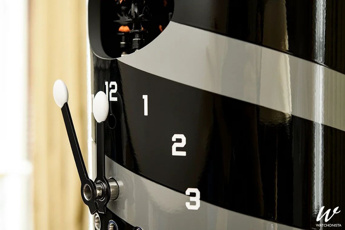 Ngoài ra, cần gạt riêng biệt bên dưới đồng hồ mang đến khả năng kiểm soát độc lập hộp nhạc cơ học – cho phép lựa chọn giữa chế độ chơi liên tục, trình diễn ngắn, hoặc đồng bộ với tiếng chuông mỗi giờ của đồng hồ.